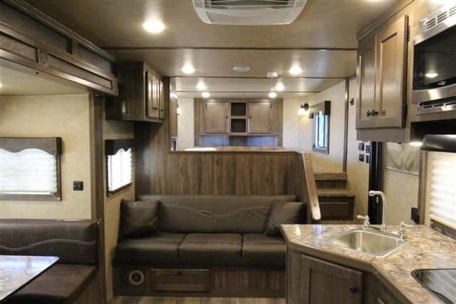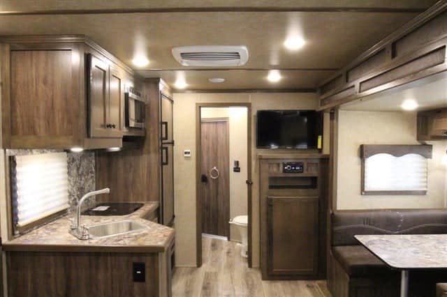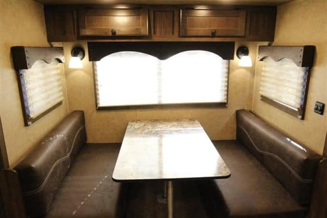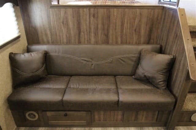 โ€ข Settle in at the dinette for dinner or drinks; there is even extra seating on the jack-knife couch!