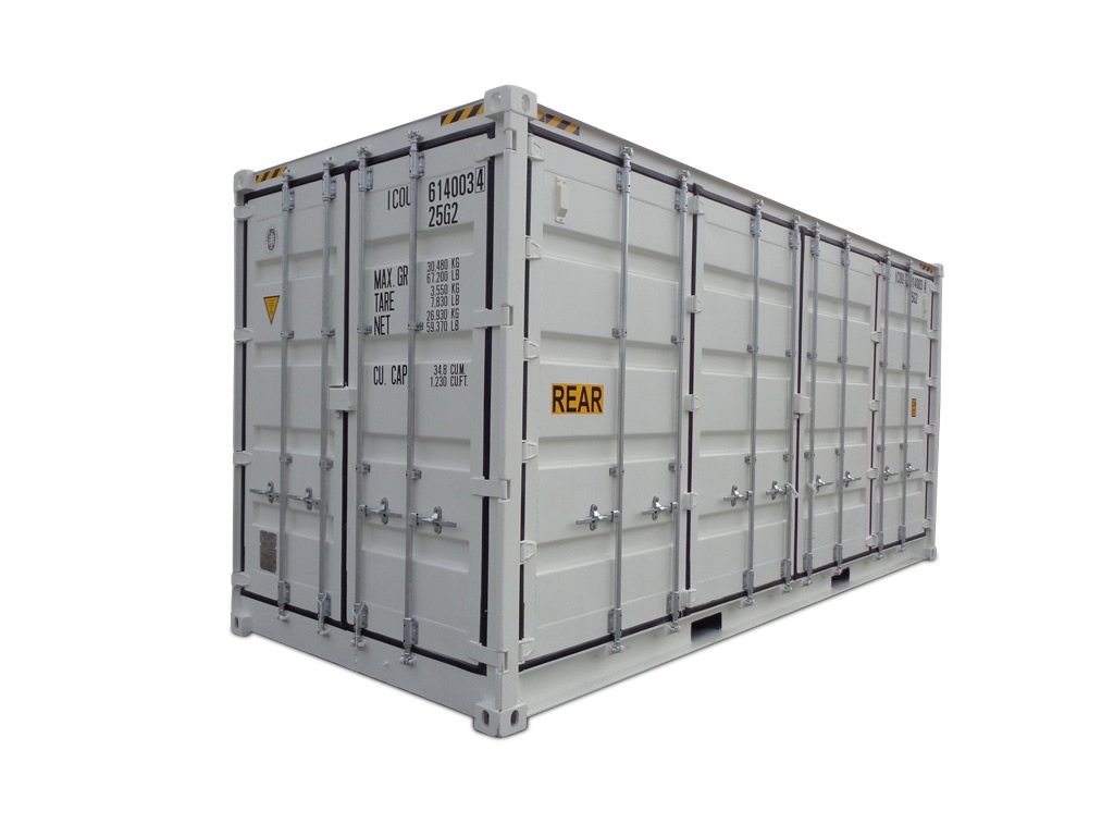 Side Opening Shipping Container 20ft container is made of corten steel. The floor is made of hardwood. The container has an unloaded weight of 3,550 kg and a maximum payload of 26.930 kg. This is a total gross weight of 30.480 kg. The double door container โ side door 20 feet high cube has the following dimensions on the outside: 6.058 x 2.438 x 2.896 (length x width x height in mm) and inside: 5.898 x 2.287 x 2.607 (length x width x height in mm) . The door opening in the shorts is 2.226 x 2.494 mm (width x height). The opening of the side door measures 5,846 x 2.494 mm (width x height). The volume of the container is 35.2 m3.